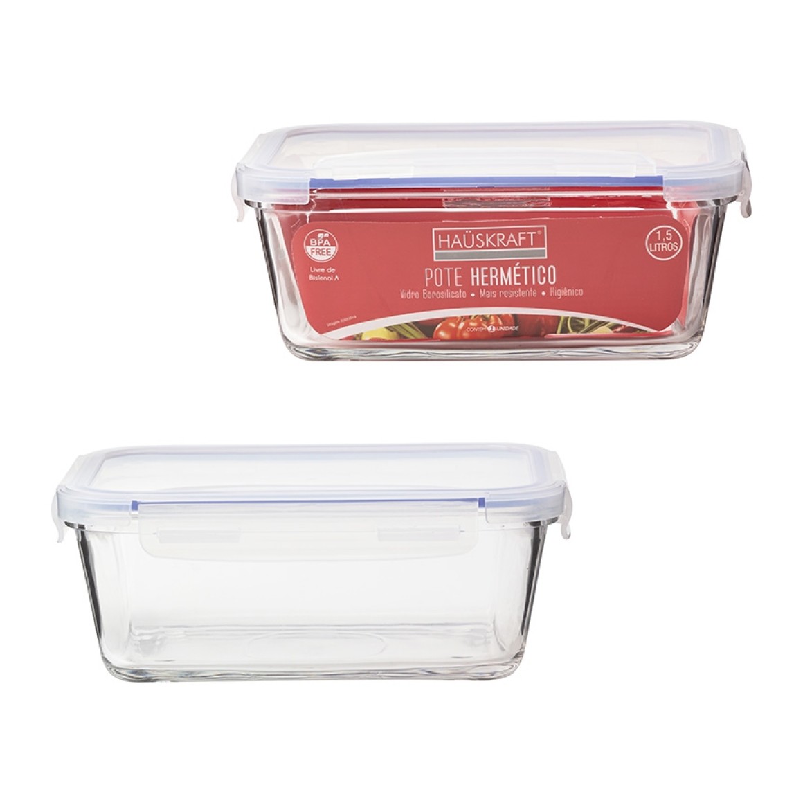 Pote hermético vidro retangular 1,5l c/1pç Prt-1500