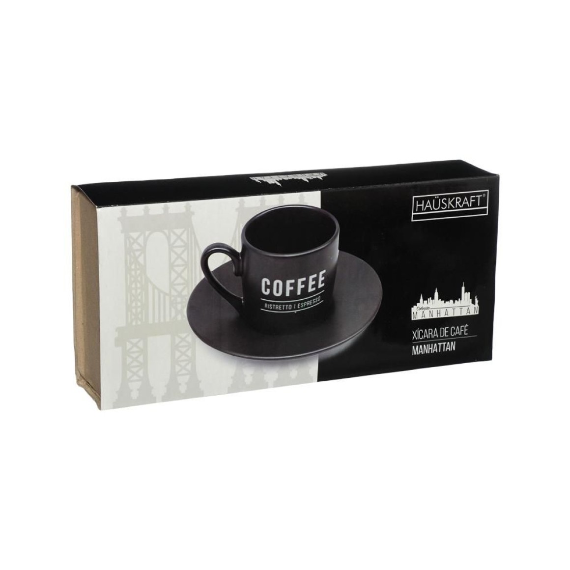 XÍCARA PARA CAFÉ COM PIRES DE PORCELANA MANHATTAN PRETA 80ML 6 PEÇAS