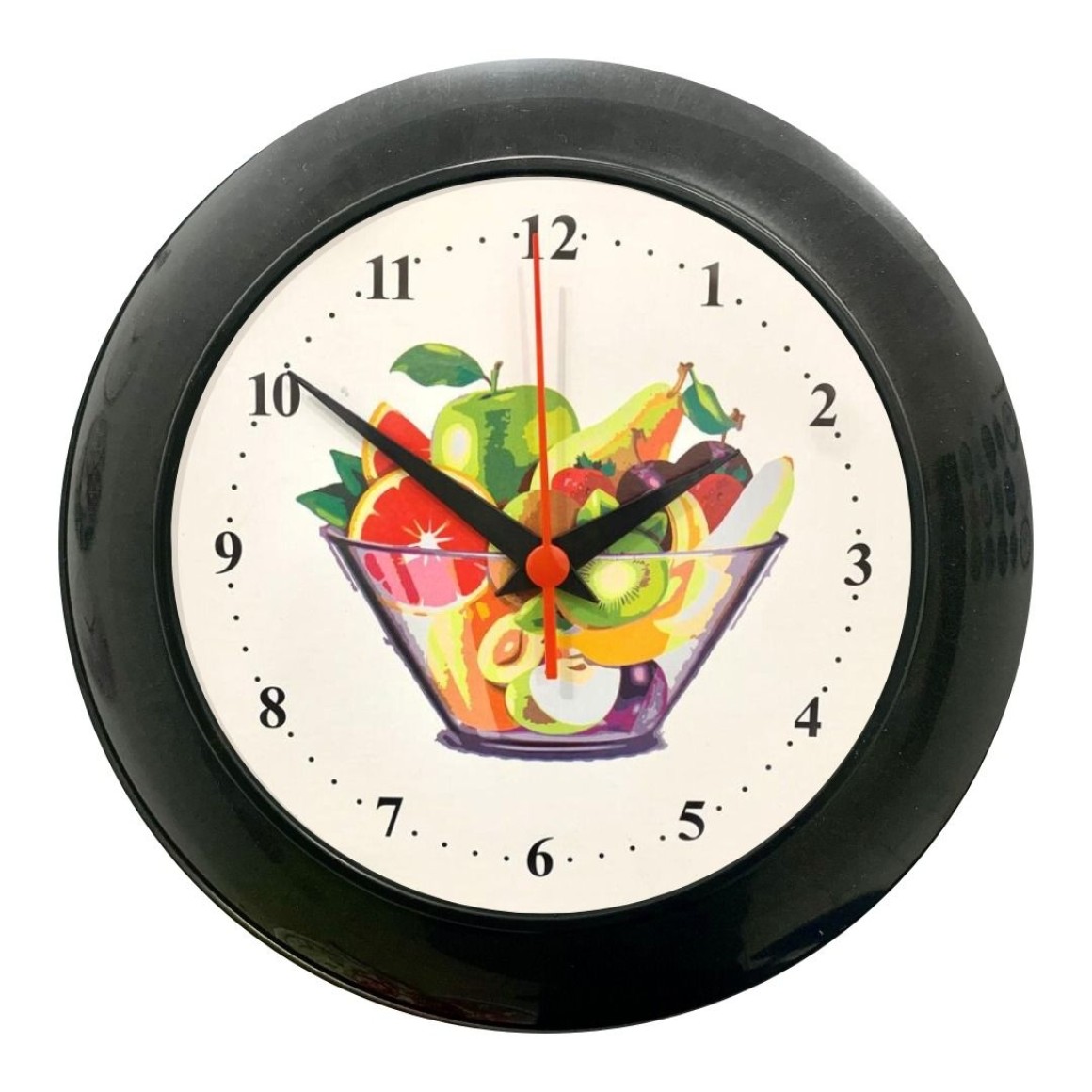 Relógio parede gde pla-504 fruteira numeral peq. preto fundo branco c/1pç plasfort