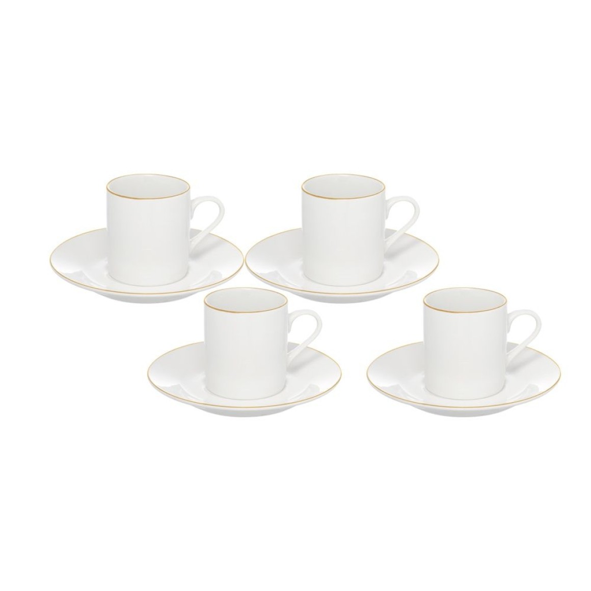 - Conjunto de xícaras para café 4 peças porcelana royal 90ml branco com borda dourada jgxc082