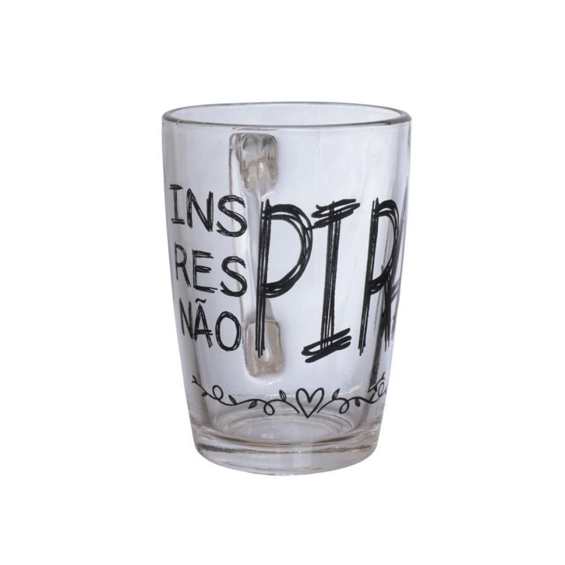 CANECA DE VIDRO INSPIRA RESPIRA NAO PIRA 320ML