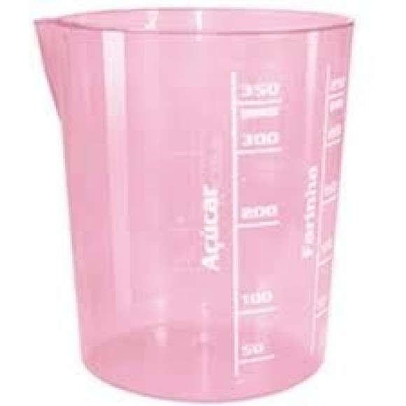 Copo graduado com diversas medidas como colher de arroz, xícaras, farinha, açúcar e muito mais,