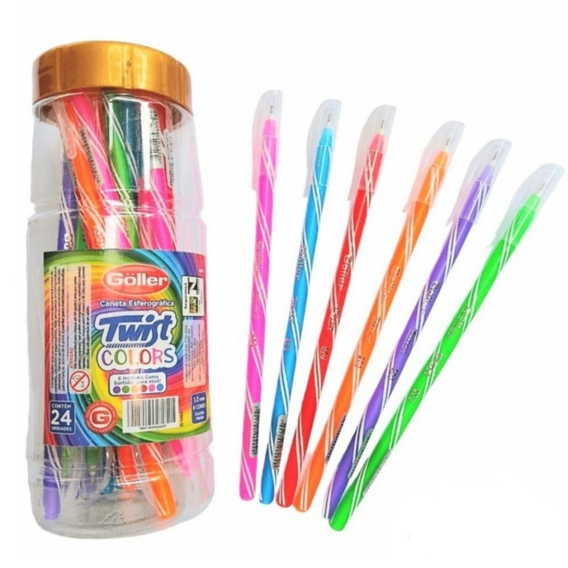Caneta esferográfica twist colors c/24 pçs 1,0mm 6262 g-1262 Goller