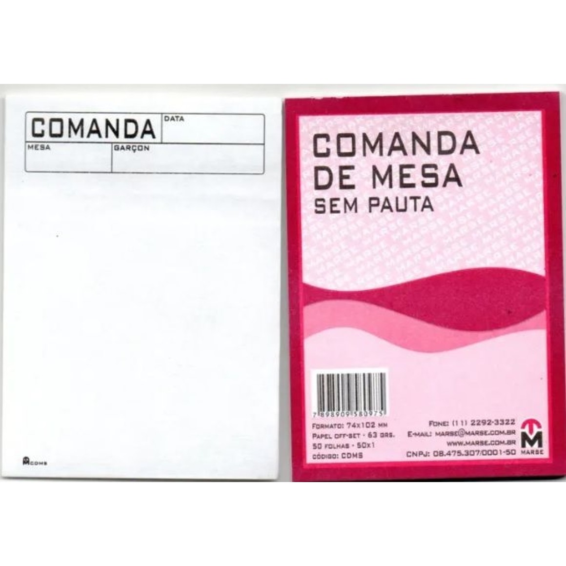 COMANDA MESA SIMPLES S/ PAUTA 0999 PCT C/5PÇS DE 50FLS 74X102MM MARSE