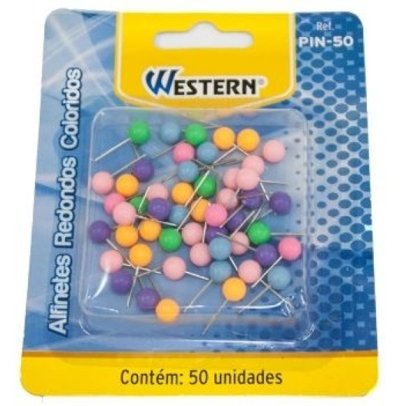 ALFINETE REDONDO COLORIDO C/50PÇS P/ MAPA PIN-50 WESTERN