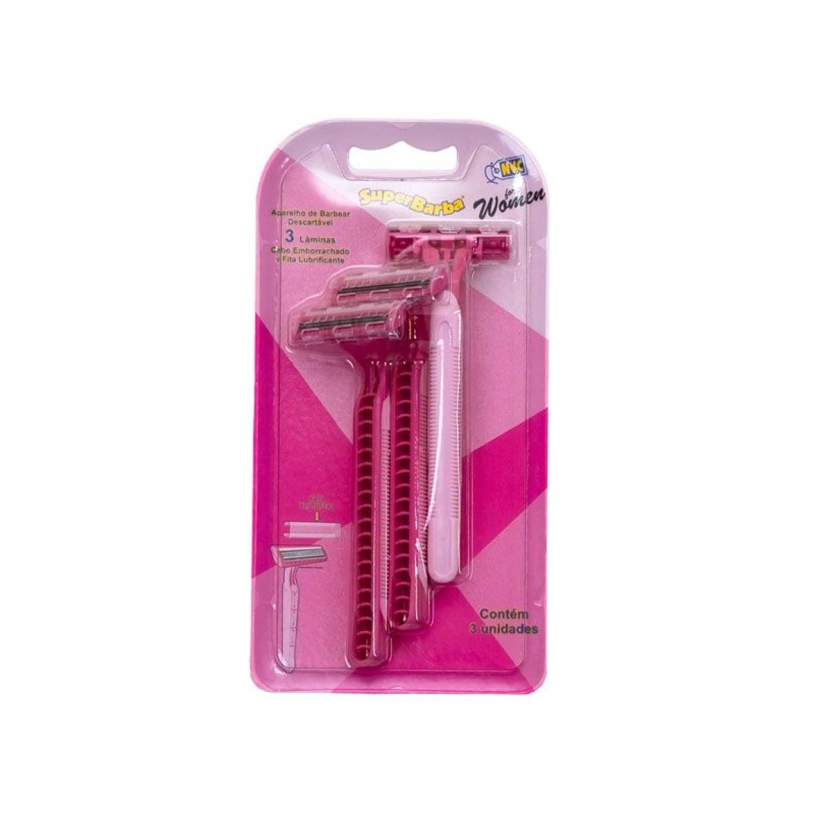 Aparelho de barbear rosa com 3 cabo emborrachado nvc
