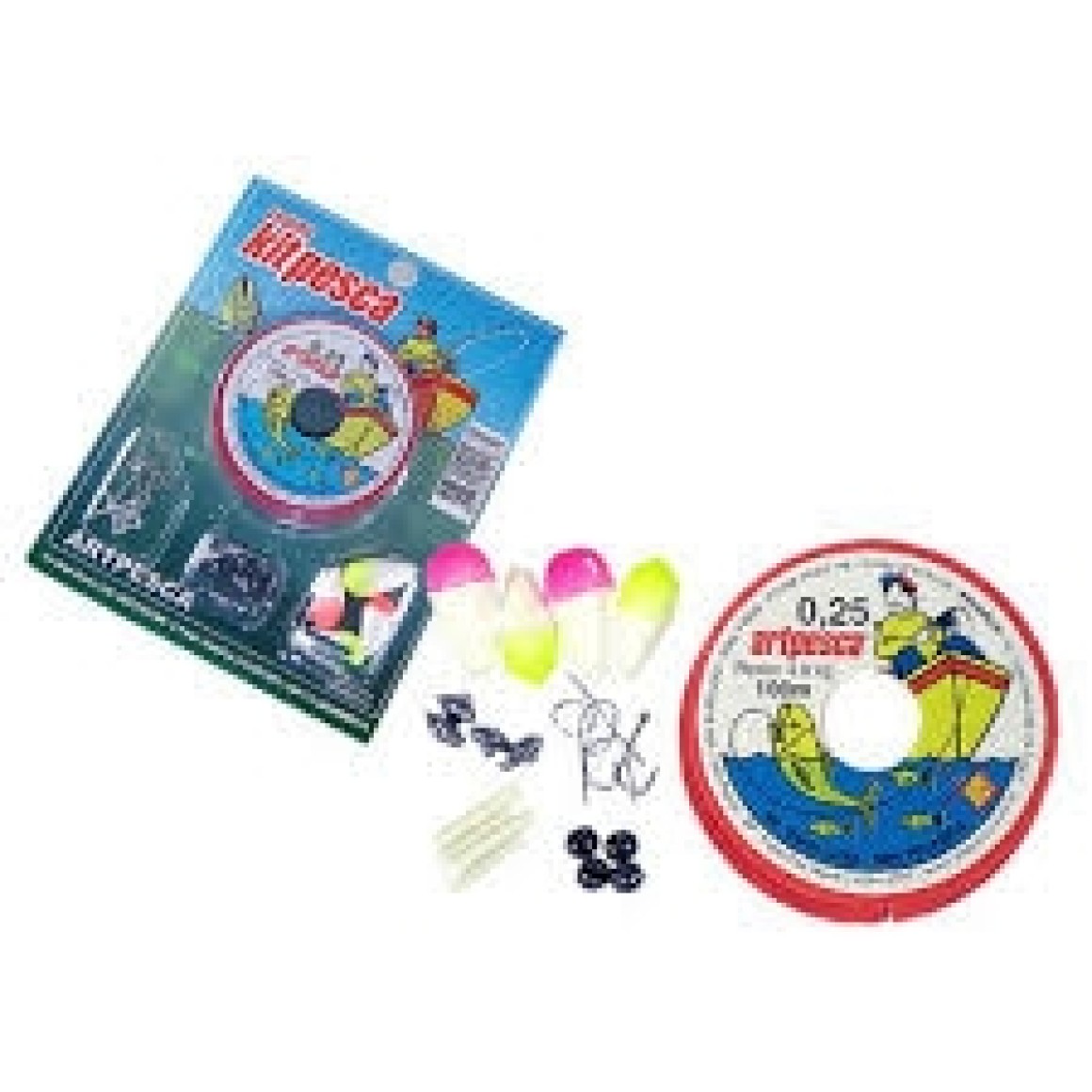Kit pesca 1872 cartela c/ linha 0,25 c/100 mts + 6anzois + 8 chumbadas + 2 boias artpesca