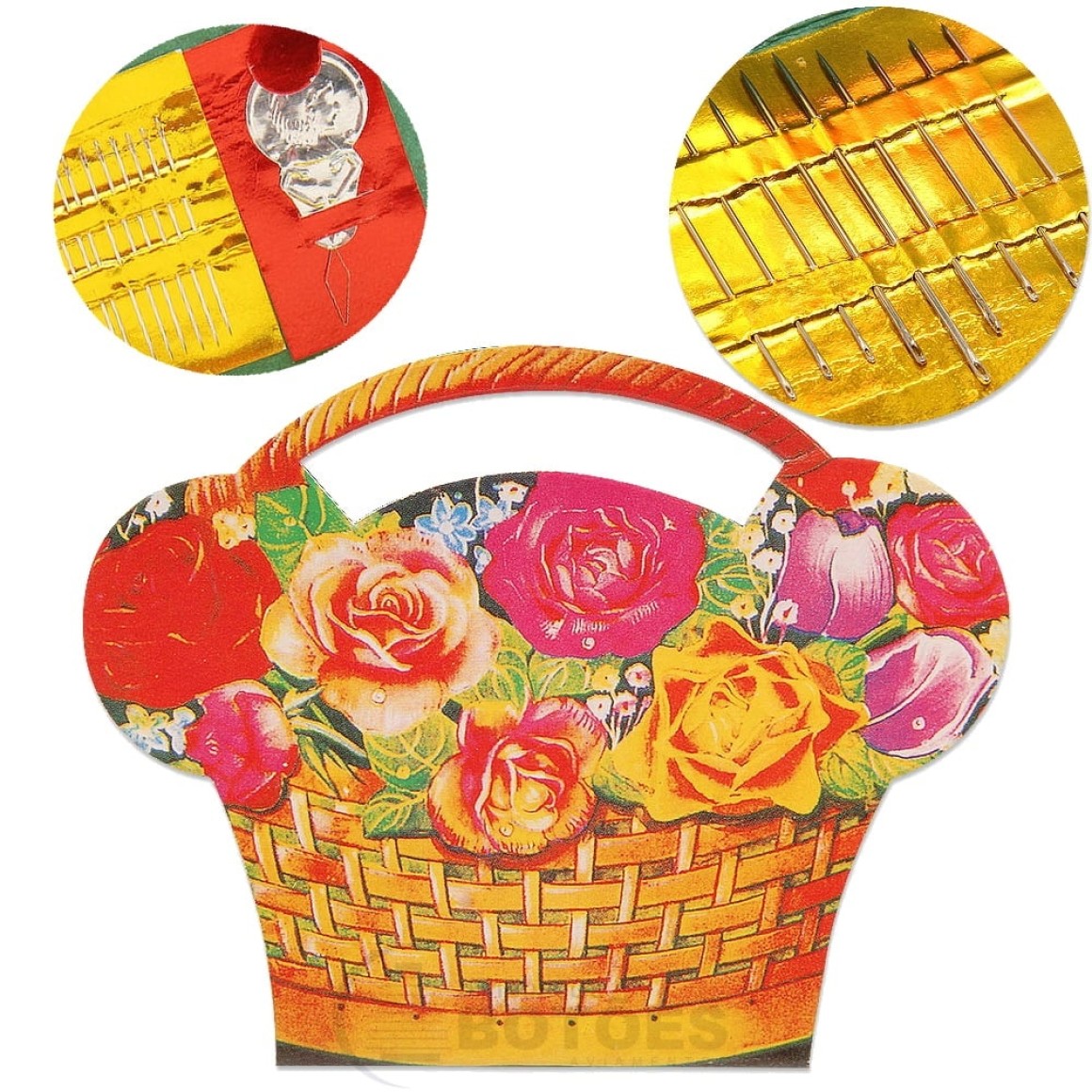 Agulheiro cesta com 12 pacotes contendo 19 agulhas + 1 passador de linha cada kit