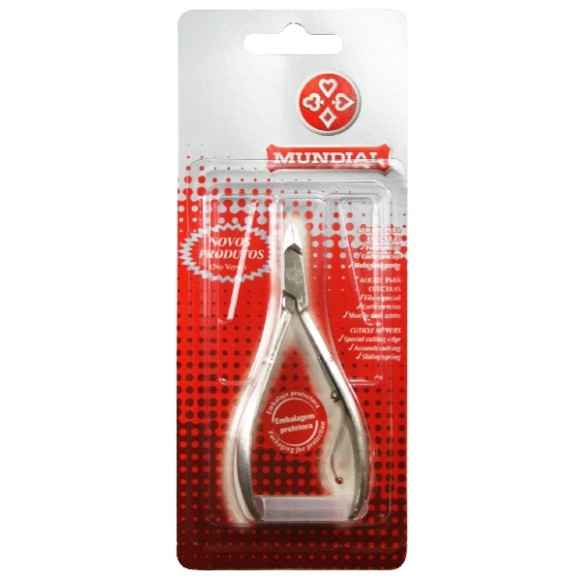 Alicate de Cutícula Mundial para cutículas com mola resistente e com redutor de atrito.