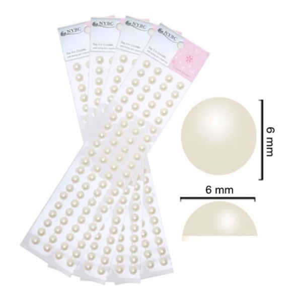 Meia perola adesiva 6mm branca cartela 5001 trama