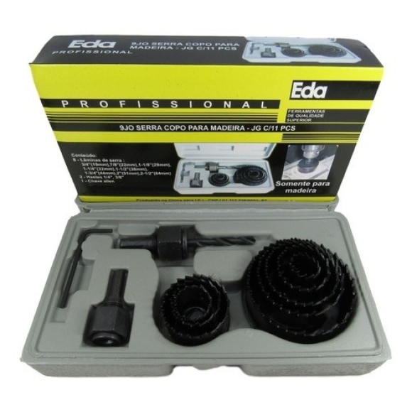 8 - Lâminas de serra: 3/4"(19mm),7/8"(22mm),1-1/08"(29mm),1-1/4"(32mm),1-1/2"(38mm),