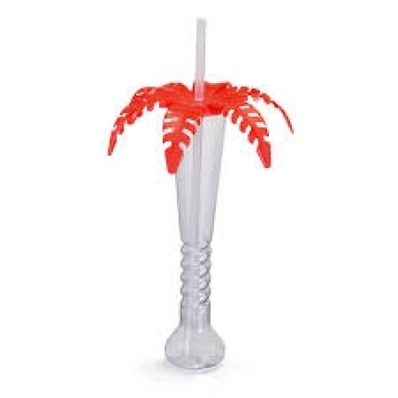 No modelo coqueiro, o copo é confeccionado em plástico com um canudo e tem capacidade de 350 ml,