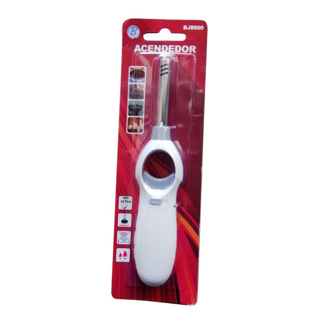 Acendedor multiuso a gás, com trava de segurança e regulador de chama.