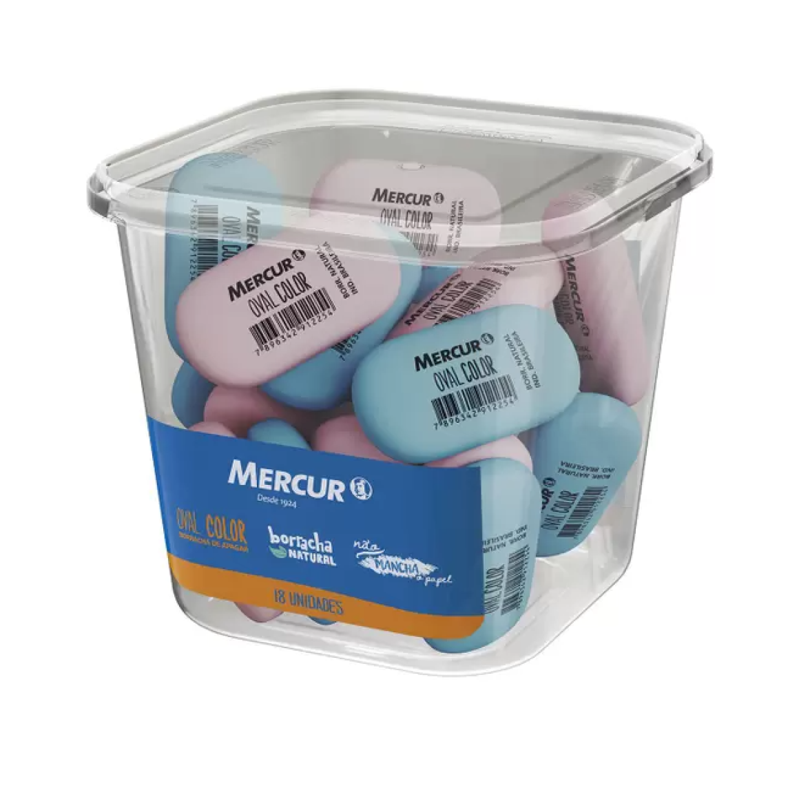 BORRACHA ESCOLAR OVAL COLORIDA POTE C/18 pçs MERCUR B2102008
