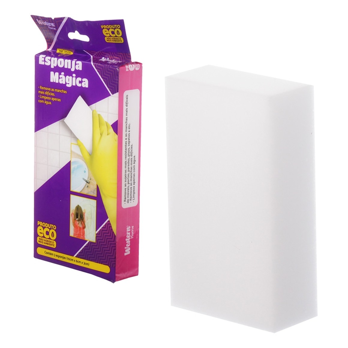 • Esponja Multiuso desenvolvida para a limpeza de manchas em superfícies diversas, sem produtos de limpeza, utilizando somente água.