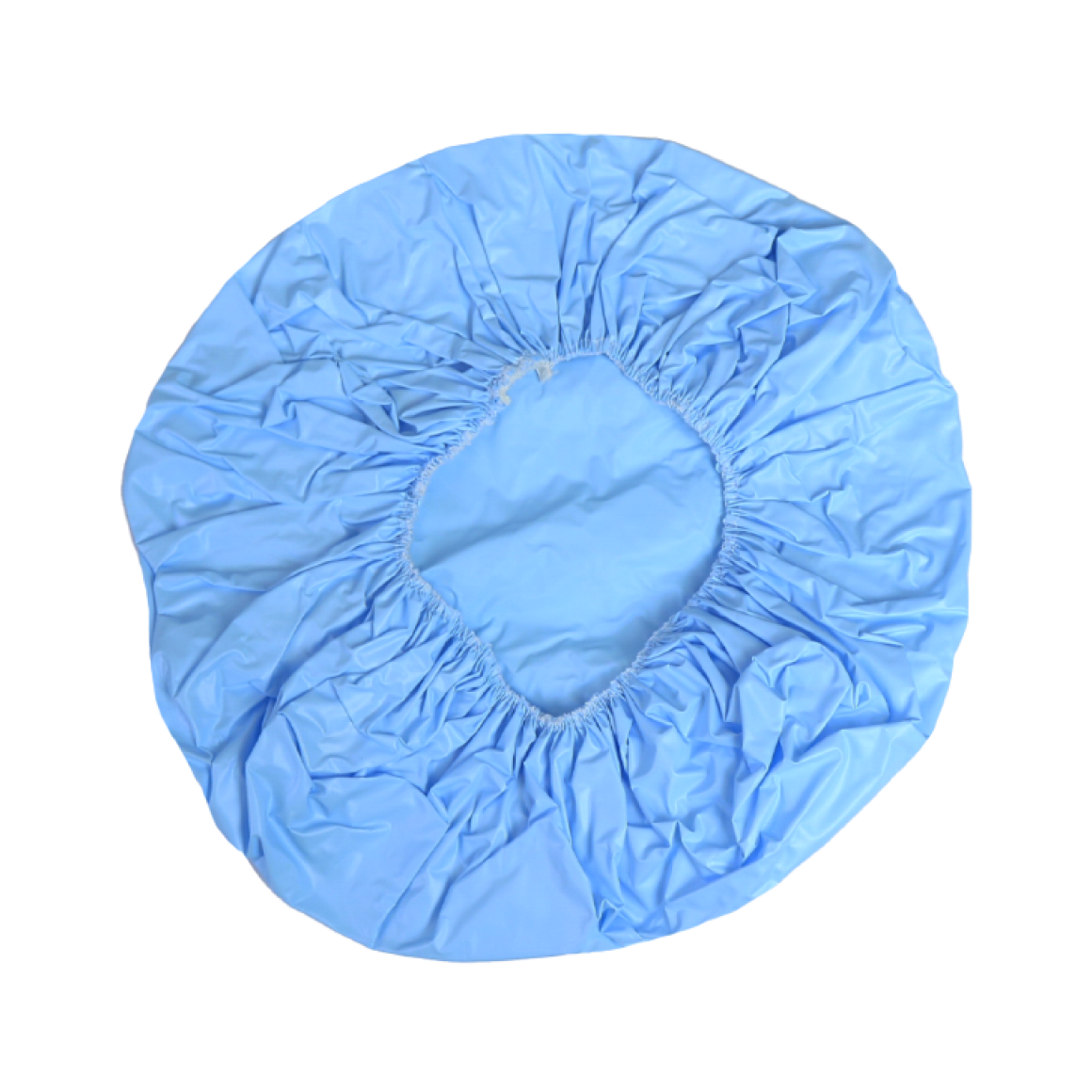 Impermeável, mais reisitente, com elástico para melhor adaptação na cabeça.
