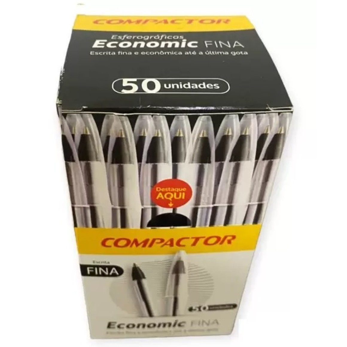 Caneta economic fina preta com 50 unidades compactor