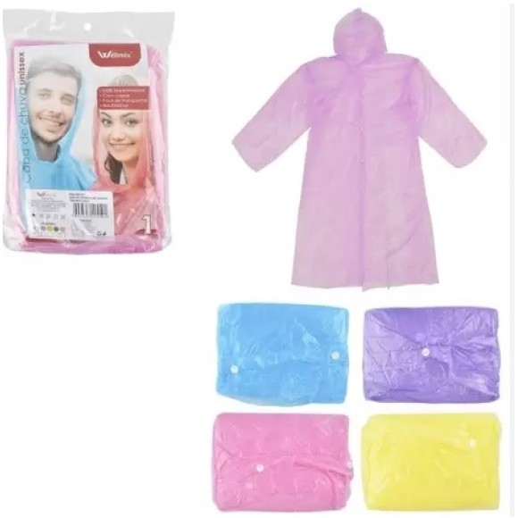 Capa chuva c/ capuz adulto c/1 peça wx1261 wellmix