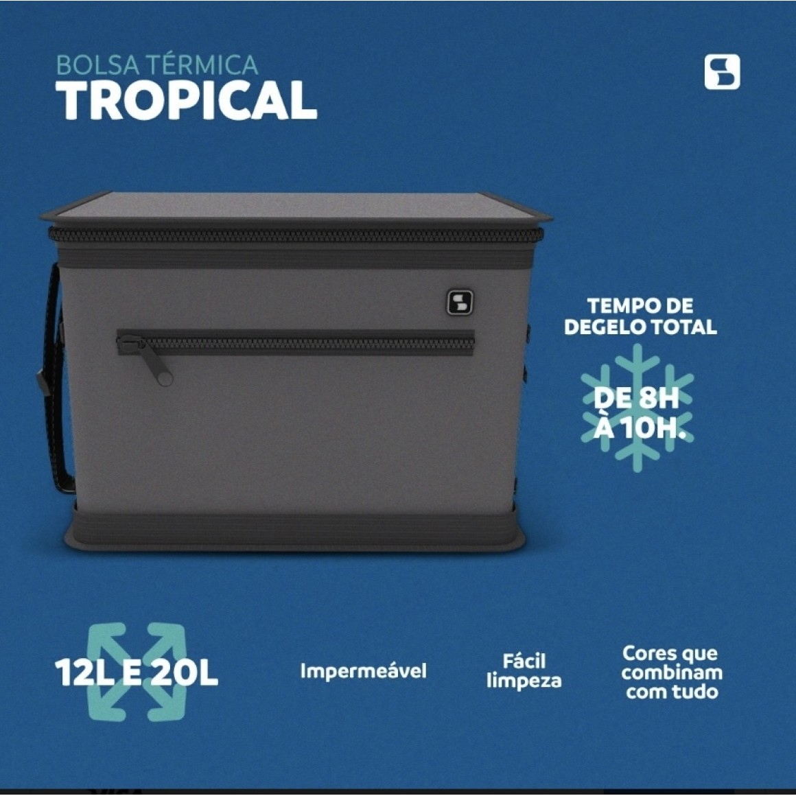 Bolsa térmica 20 litros com alça tropical cinza e preta soprano