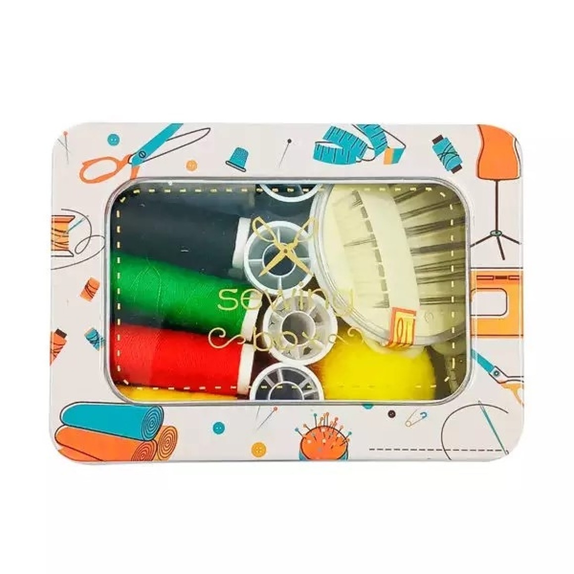 (Kit contém 1 estojo, 12 carreteis de linha 100% Poliester, 1 tesoura, 1 fita métrica, 1 passador de linha e 1 pompom).