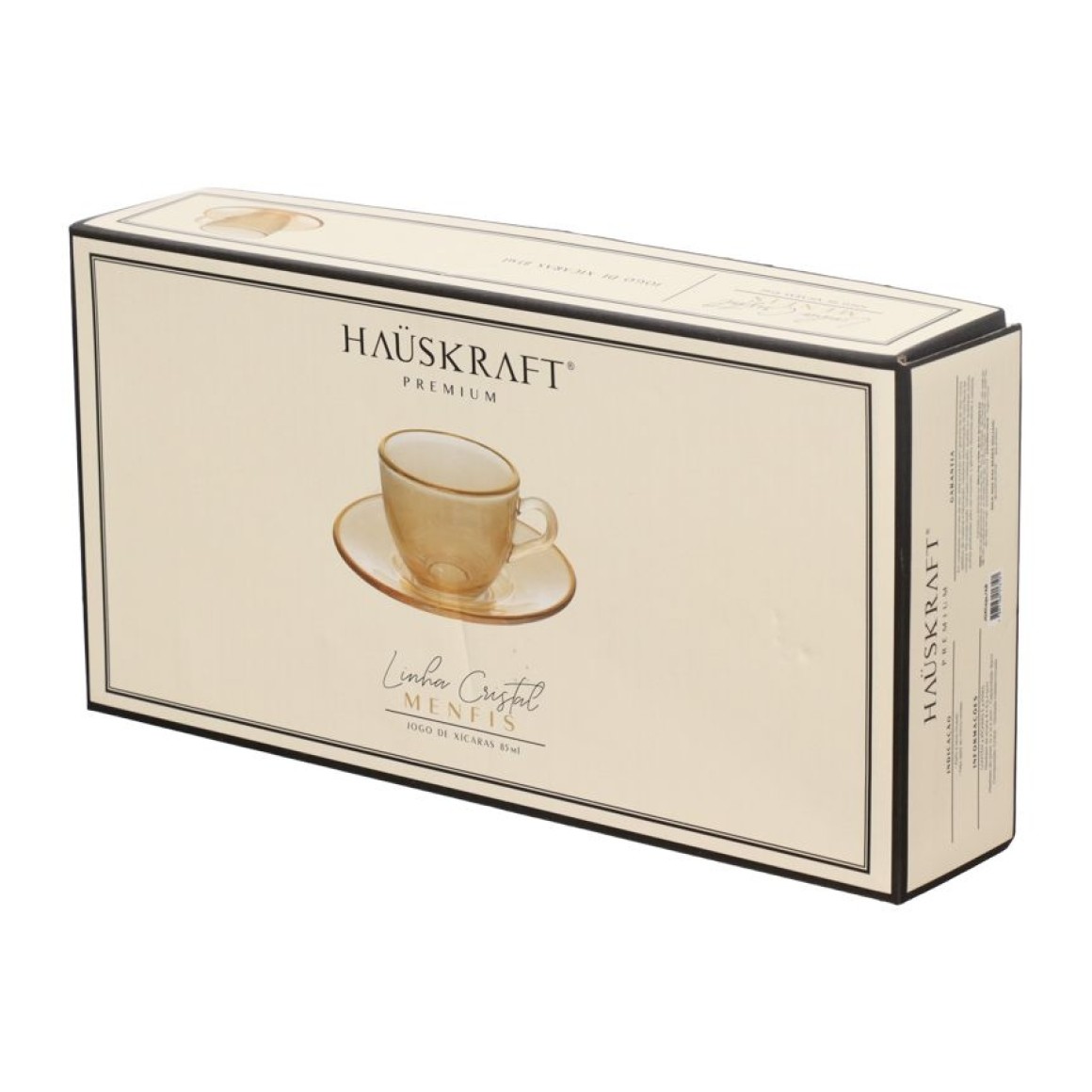 Jogo xícaras para café cristal menfis âmbar com borda dourada 85ml 4 peças