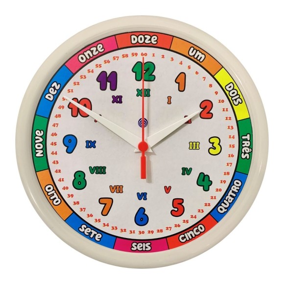 Relógio parede peq. pla-214 didático numeral peq. colorido todo branco c/1pç plasfort