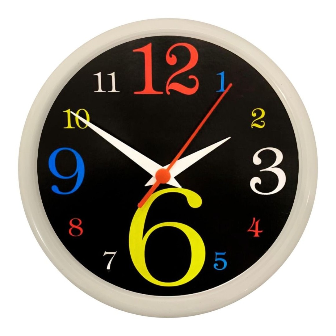 Relógio parede peq. pla-003 numeral gde colorido fundo preto c/1pç plasfort