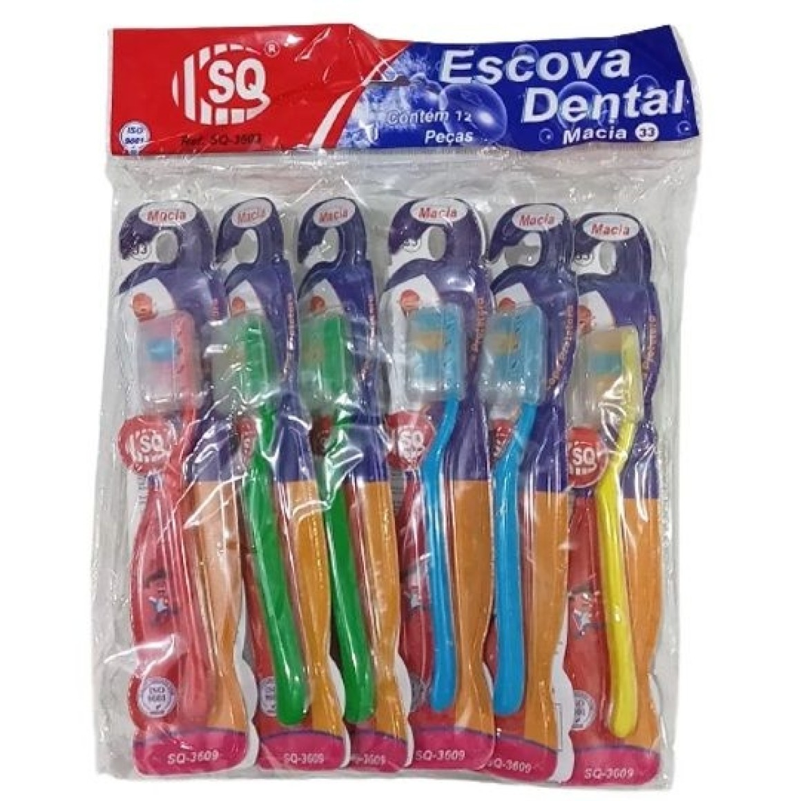Escova dente cerda macia Infantil lisa c/12pçs c/capa sq-3609 sq
