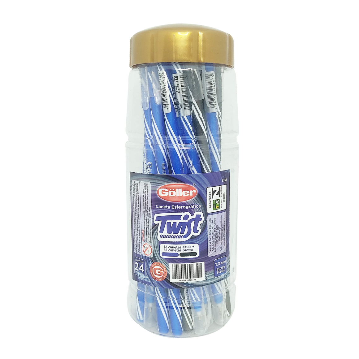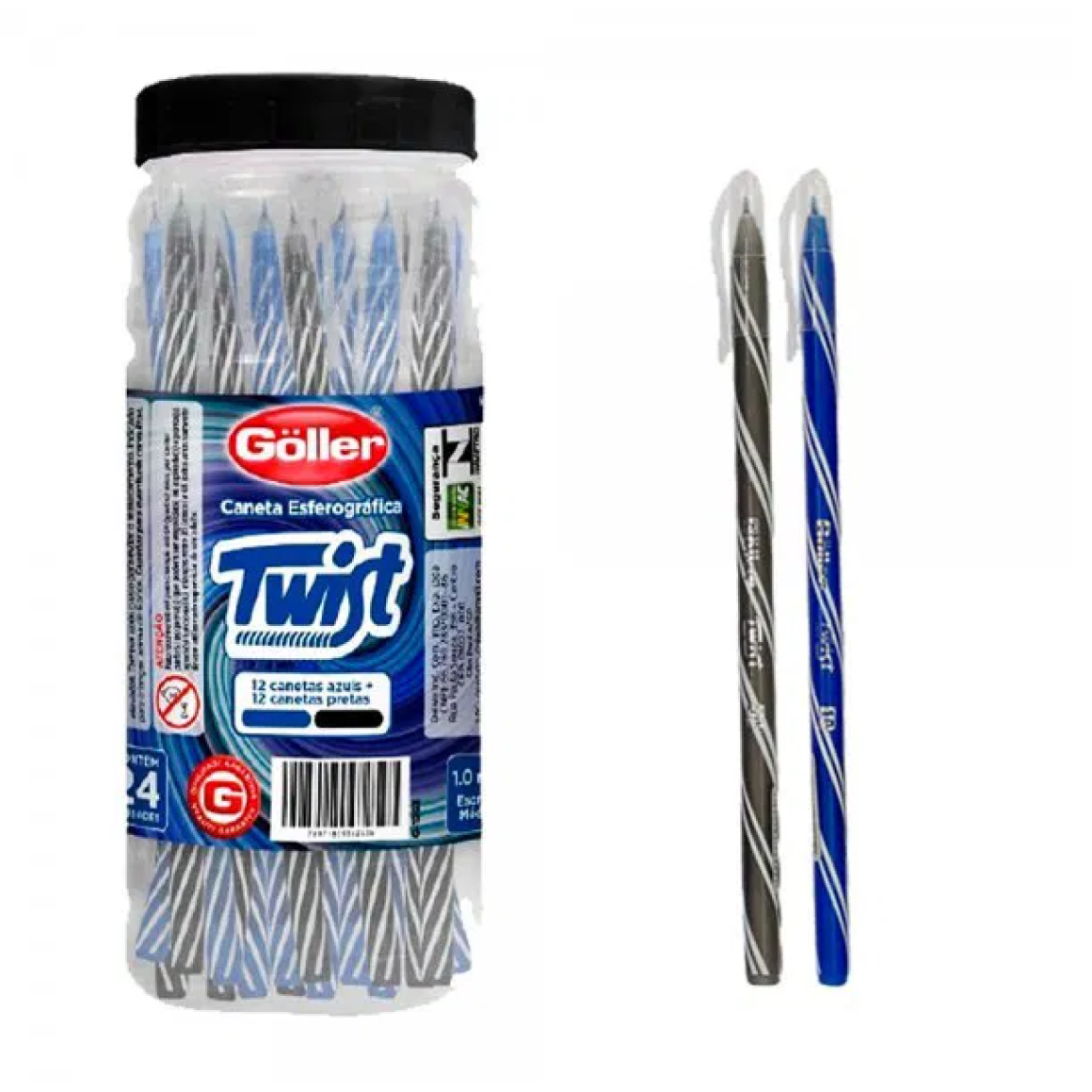 Caneta esferográfica twist preta e azul c/24 pçs 1,0mm 6263 g-1263 Goller