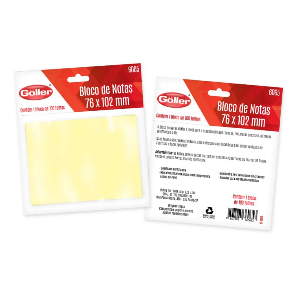 Bloco adesivo postit c/1pç c/100 fls 76x102mm 6065 g-1165 Goller