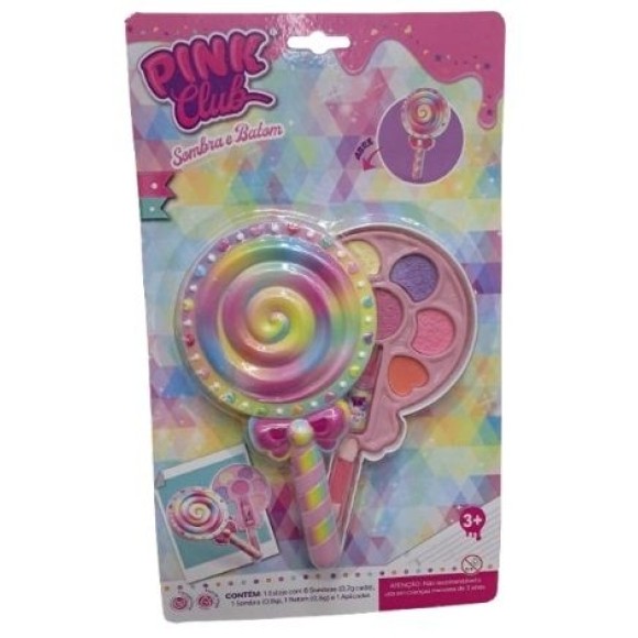 - Contém 1 estojo de maquiagem formato Pirulito Lollipop com 1 batom e 7 sombras, mais um pincel para a aplicação