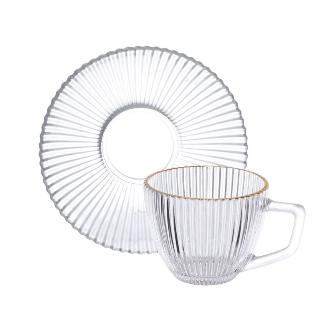 Jogo xícaras chá graffiatto c/6pçs 230ml transparente borda dourada jgxc065/gd