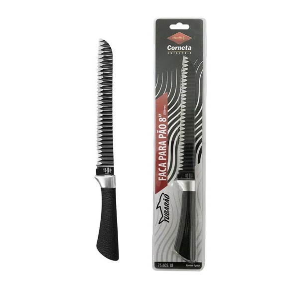 • A linha Tubarão da Corneta é a inovação e satisfação em facas Chef, seu design ondulado acompanhado de um corte preciso e uma empunhadura confortável dão um toque especial a sua cozinha e a arte de cozinhar, sucesso garantido no preparo de seus alimentos.