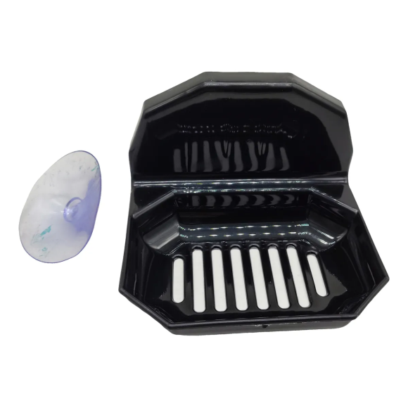 Mantenha seu banheiro mais organizado e funcional com a Saboneteira de Plástico Preta com Ventosa.