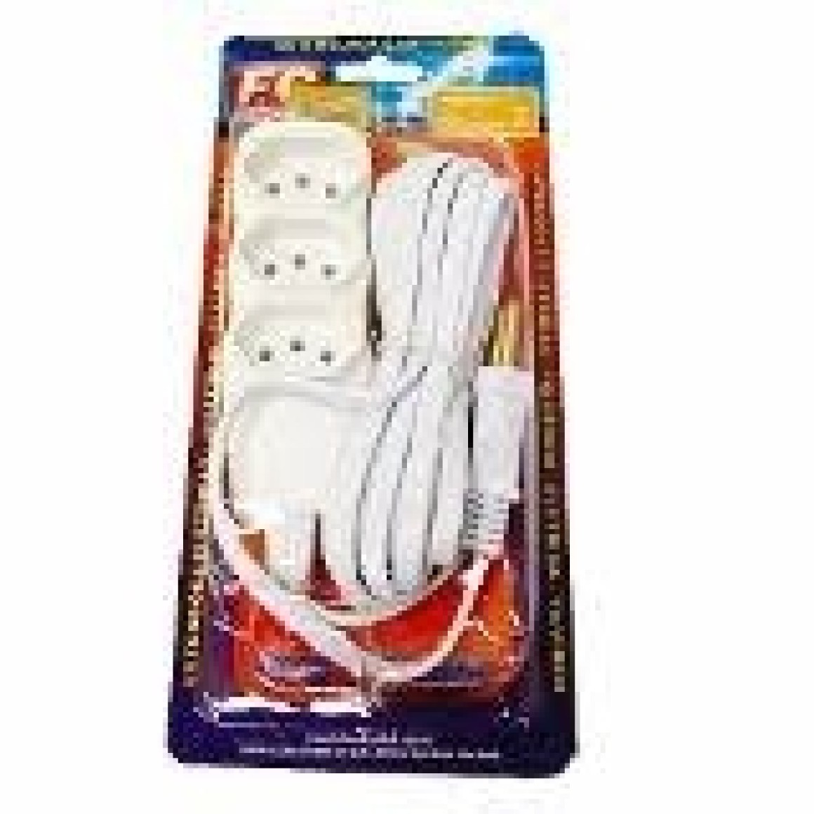 A Extensão com 3 tomadas tem a função de interligar até 3 sistemas eletrônicos, ou seja,