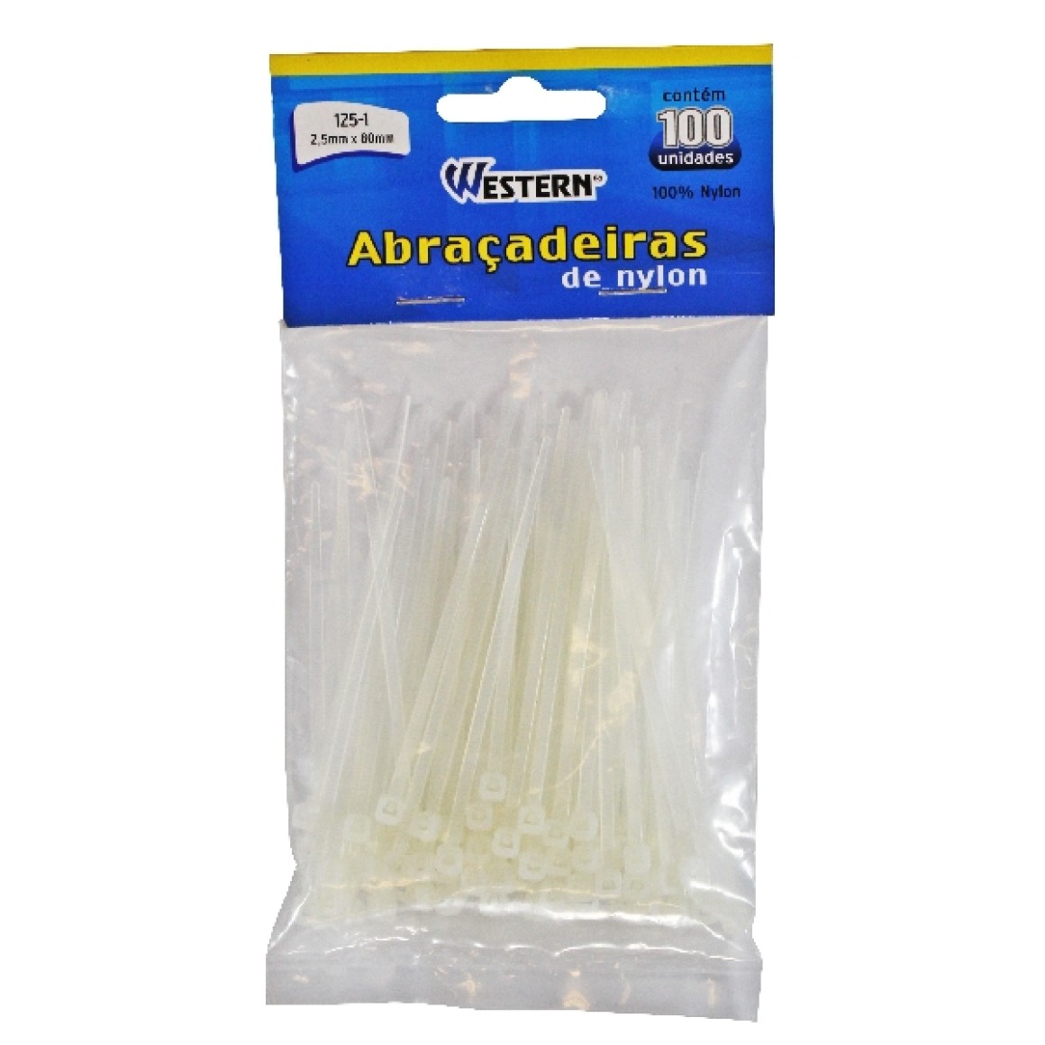 Abraçadeira 125-1 pacote c/100 pçs nylon branca 2.5mmx80mm
