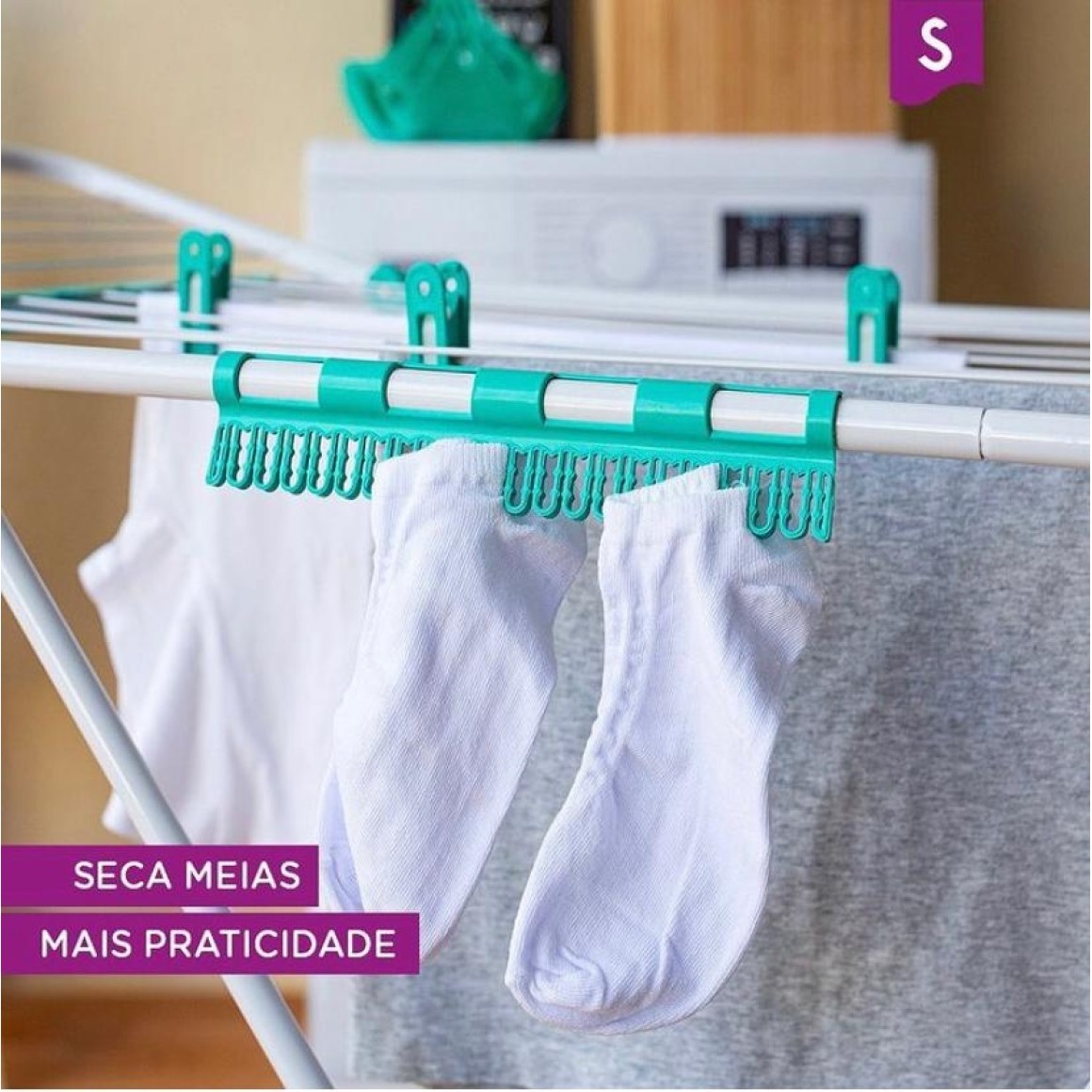 Varal com acabamento em plástico, pintado com tinta híbrida Epóxi + Poliéster) - Anti arranhões e ferrugem.