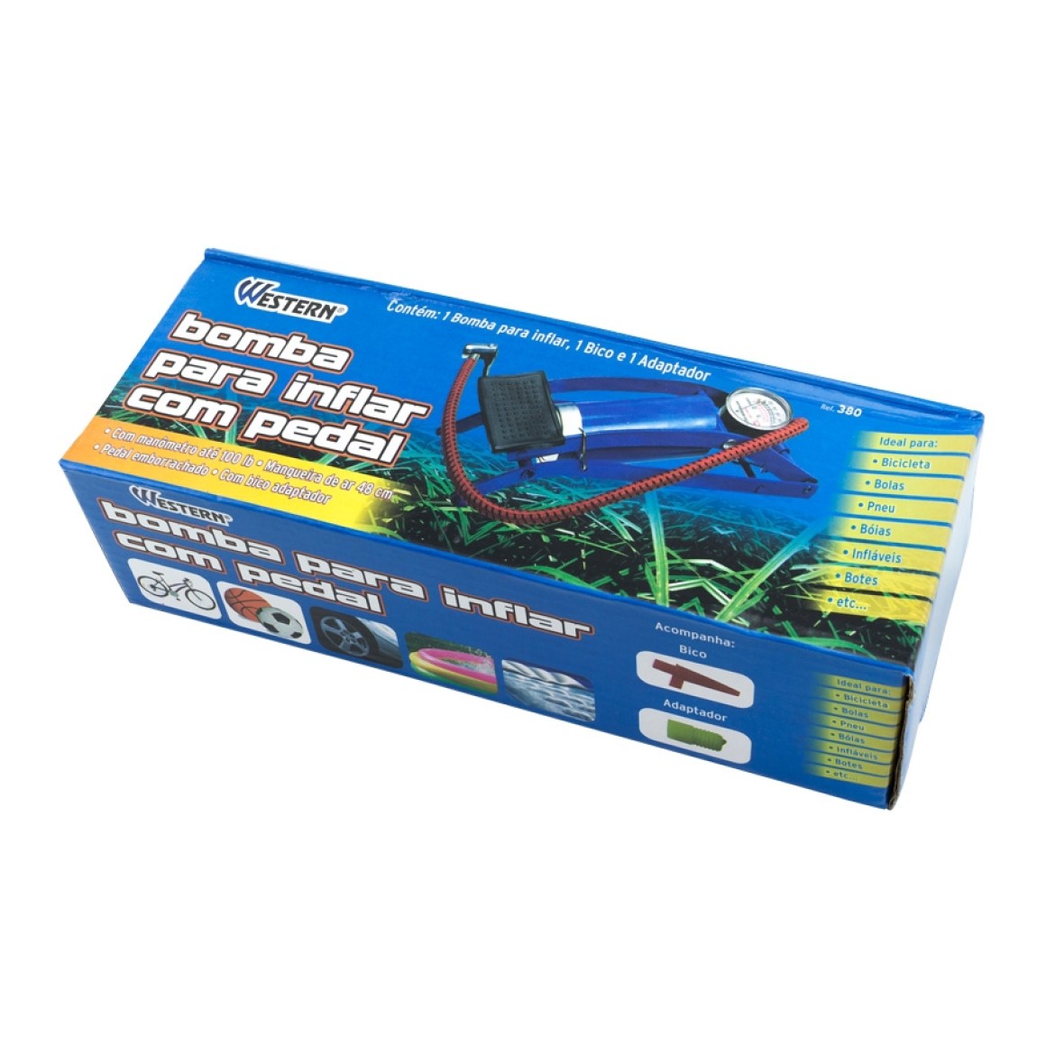• 4) Com o pé, pise no pedal da bomba para inflar e bombeie diversas vezes até o objeto inflar com a pressão desejada.