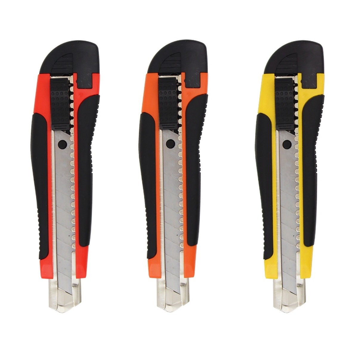 4. Para trocar as lâminas, retire a tampa. Aperte e empurre a auto trava para baixo até o final do estilete. Retire a lâmina antiga e encaixe a lâmina nova na auto trava, após, insere-a cuidadosamente no estilete apertando a trava.