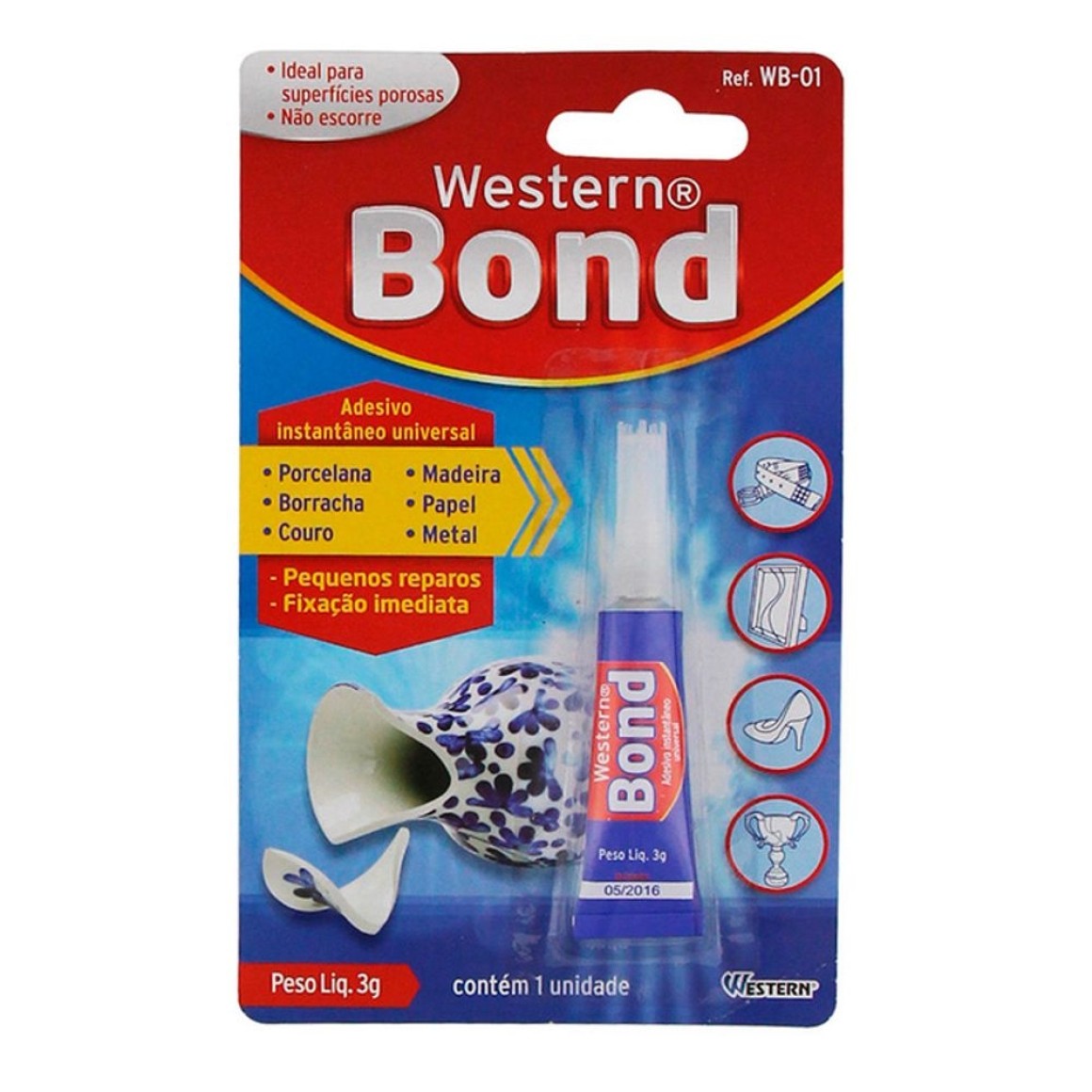 • Western® Bond é um adesivo instantâneo universal, de fixaçao imediata que garante uma rápida e eficaz adesão em diversos materiais como: