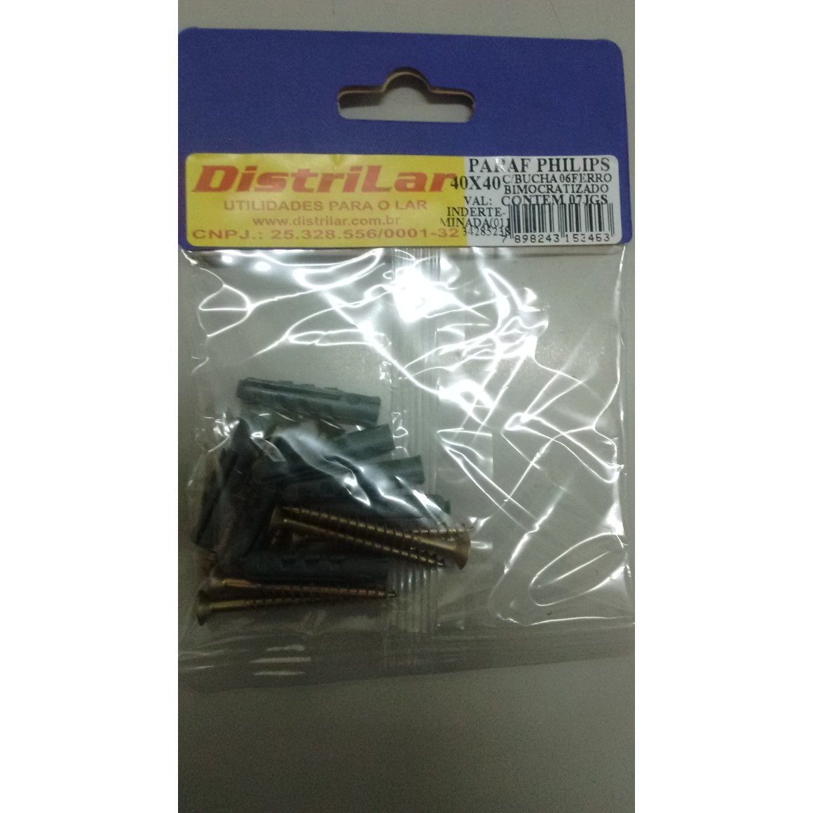 Parafuso philips ferro polietileno c/ bucha nº6 40x40 c/6jgs pct c/6pçs districenter