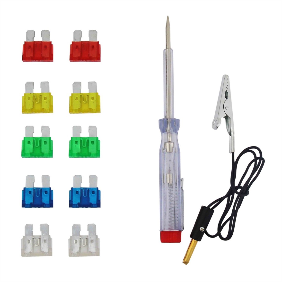 D) Para testar fusível. Encoste a ponta da chave teste no terminal do fusível. Se a chave teste acender, o fusível está funcionando.