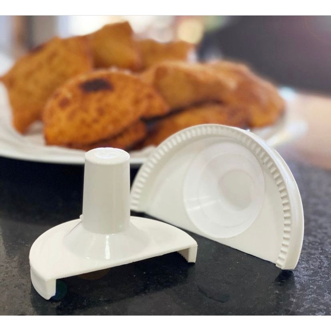 O modelador de Pastel Decor-Útil corta, modela e fecha os pastéis em dois tamanhos diferentes em formato de meia lua.