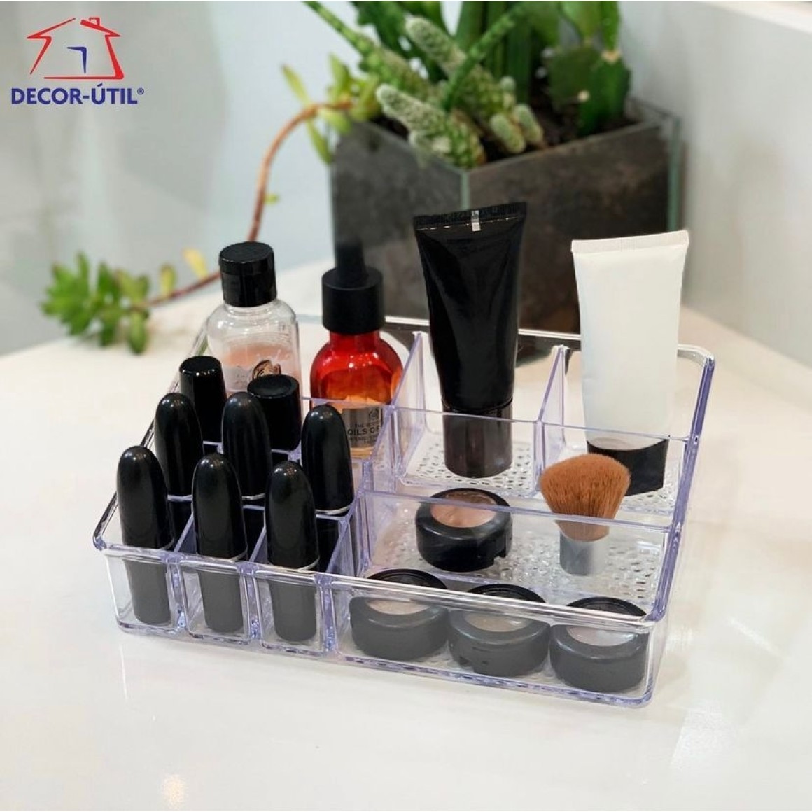 Com um design inteligente e funcional, este organizador oferece compartimentos e separações versáteis para acomodar uma variedade de cosméticos e bijuterias, mantendo-os visíveis e bem organizados.