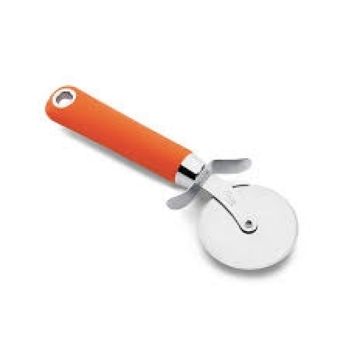 O cortador de pizza possui uma esfera rodante que lhe permite dividir a pizza de maneira precisa e sem dificuldades.