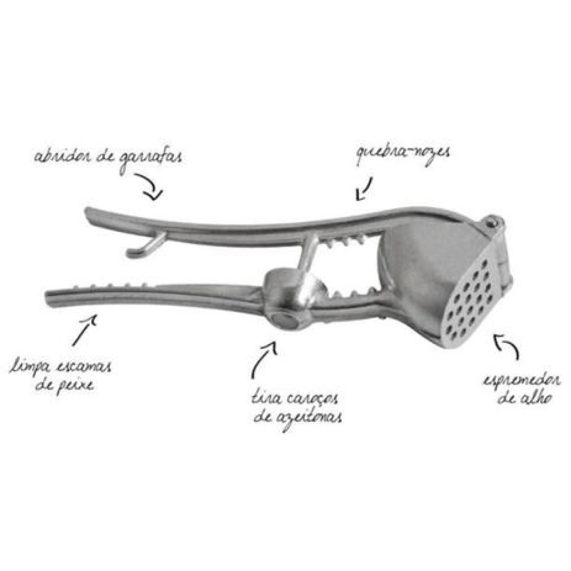 Além de espremer o alho com facilidade ainda abre garrafa, descaroça azeitonas, quebra nozes e