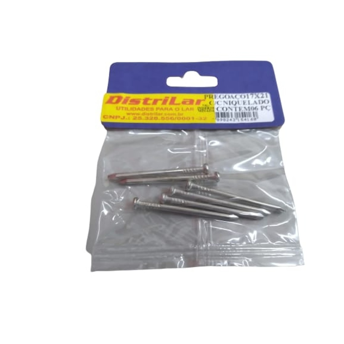 Prego aço niquelado 17x21 com 6 pacotes contendo 6 peças cada pacote Districenter