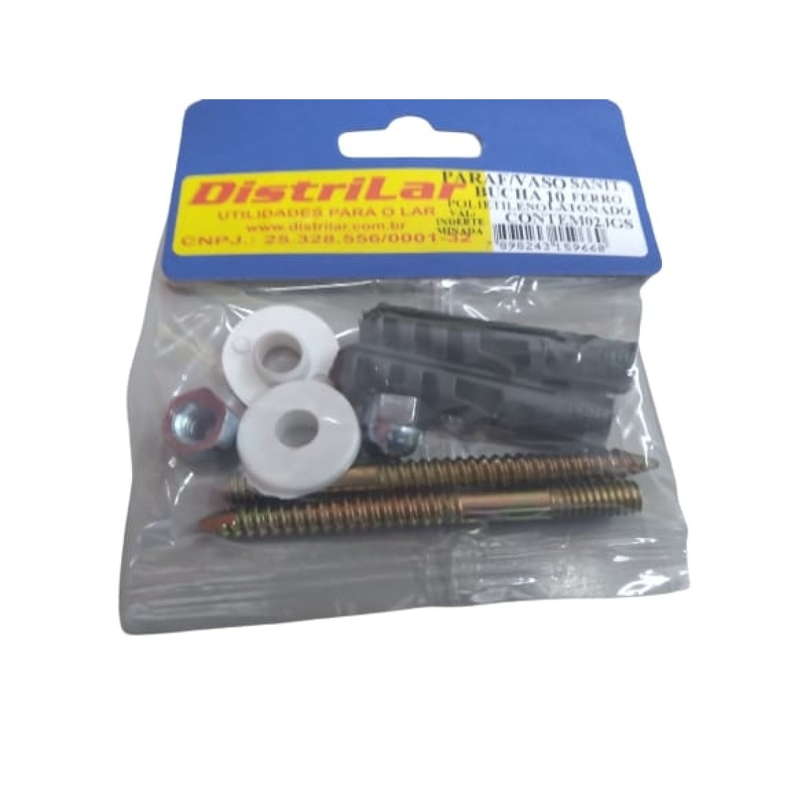 Parafuso ferro polieti latonado vaso sanitário bucha nº10 c/2jgs pct c/6pçs