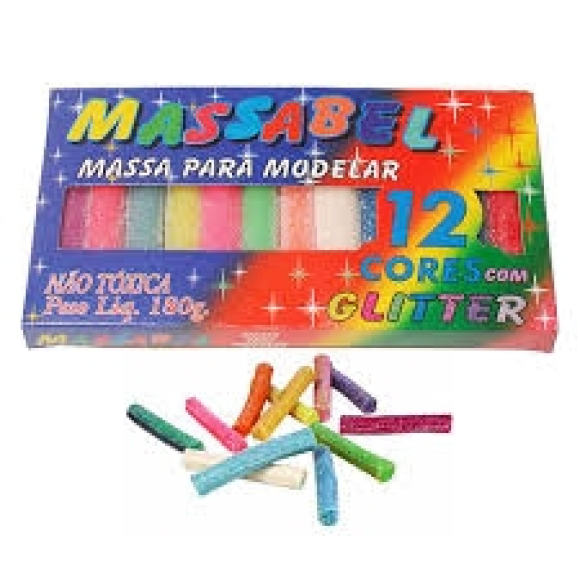 Massa modelar c/1pç 180gr 5066 c/gliter 12 cores massabel