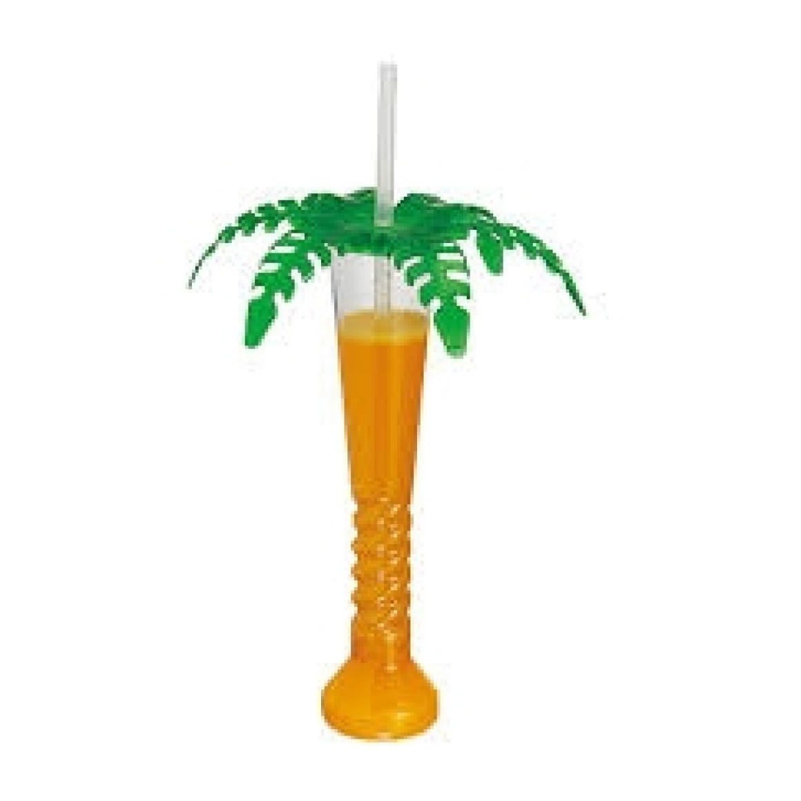 No modelo coqueiro, o copo é confeccionado em plástico com um canudo e tem capacidade de 350 ml,
